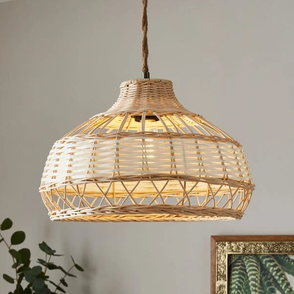 Enhance your space with the Carmen Rattan Easy Fit Pendant Shade. Its rustic boho vibes, crafted from rattan, add character to any room. With an easy fit feature, no electrician is needed – simply pair it with your own lighting flex for instant charm and ambience!