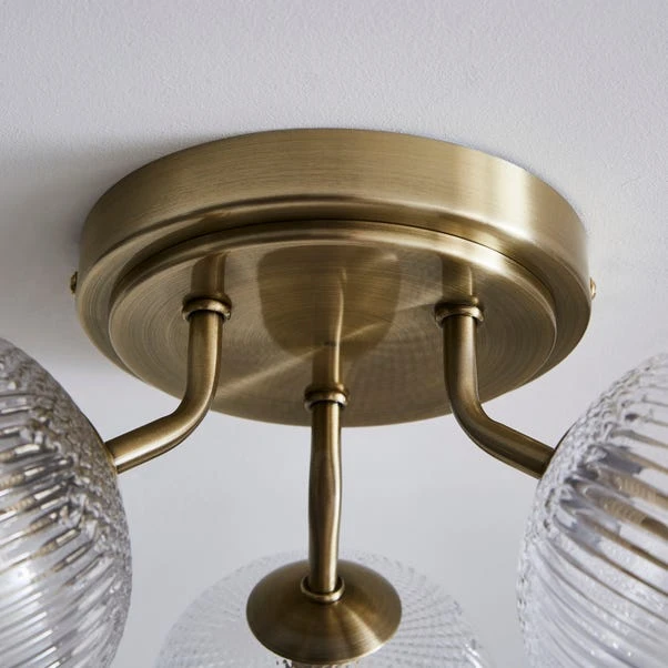 Add glamour to your room with the Cassia Ribbed 3 Light Semi Flush Ceiling Light. It features a cut glass design, angled heads, and a semi-flush positioning – ideal for low ceilings.