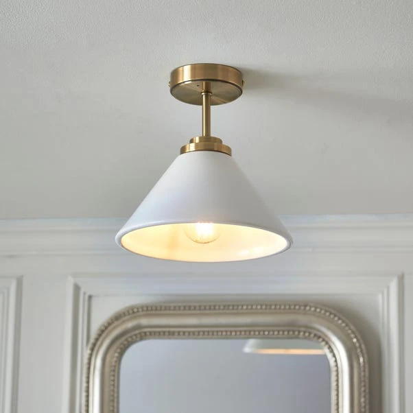 Featuring an antique brass finish, this flush light adds a touch of elegance to your bathroom decor. Crafted for compatibility with a dimmable bulb, it provides versatility in setting the perfect lighting ambience to suit your mood. This light is not only stylish but also functional, suitable for use in bathroom settings. Explore the matching family items, available to purchase separately.