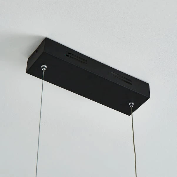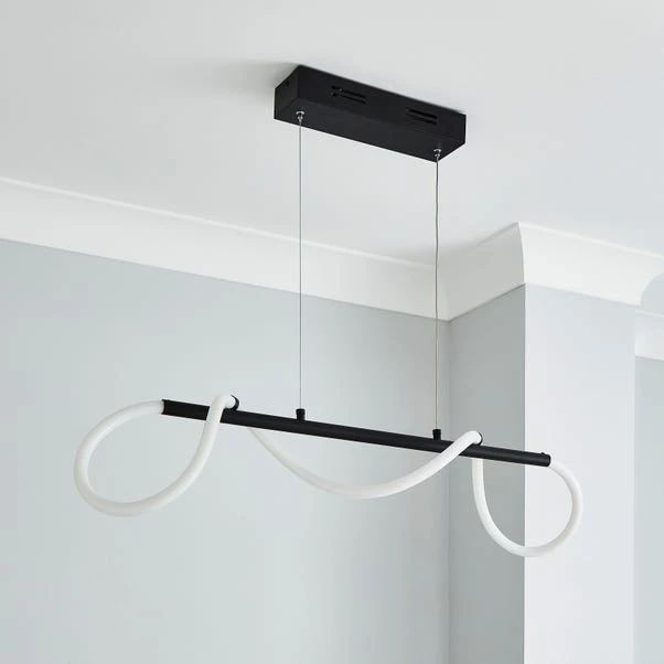 The Flexi ceiling fitting features a modern design with a metal base and a bar suspension that will add a unique look to your chosen room. Complete with a white LED silicone light that can be pulled through the metal hoops along the bar, create your own unique shape. This piece is dimmable compatible, making it both an attractive and practical product. A 5-year guarantee is provided with this ceiling light.