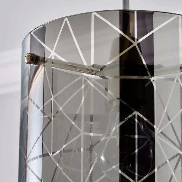 The Grayson Large Easy Fit Pendant is crafted from a stylish smoked glass, featuring a modern cylindrical design that would add a contemporary touch to any room. This modern glass shade also features chrome metal details and a stylish frosted etched finish, perfect for adding a luxurious touch to your room. Easy Fit pendants are ideal for a quick style change without needing an electrician. Simply assemble on to your existing ceiling fitting, and you’re good to go within minutes! Don’t forget to choose the correct bulb for your ceiling fitting.