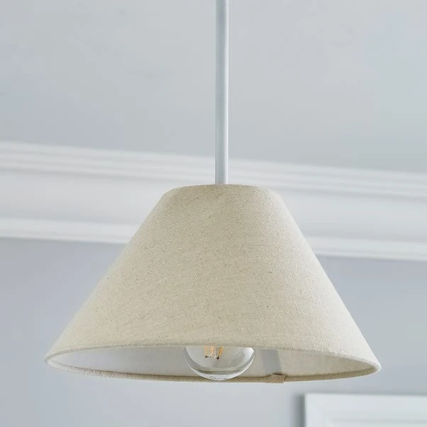 Made from high quality natural linen, our classic contemporary style fabric light shade features a textured finish available in a stunning choice of colours. This shade is suitable for use as both a ceiling fitting and as a table lamp shade.