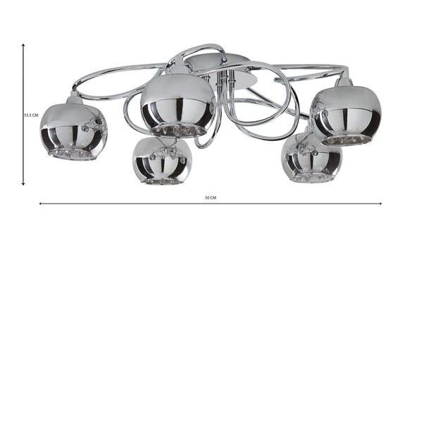 Featuring five ombre glass bauble shades designed with delicate clear glass droplets, the Seychelles ceiling fitting would make a glamorous addition to any room. This beautifuly crafted fitting is made with a beautiful woven arm frame with a sleek chrome effect finish, and available with a choice of shade colour options.