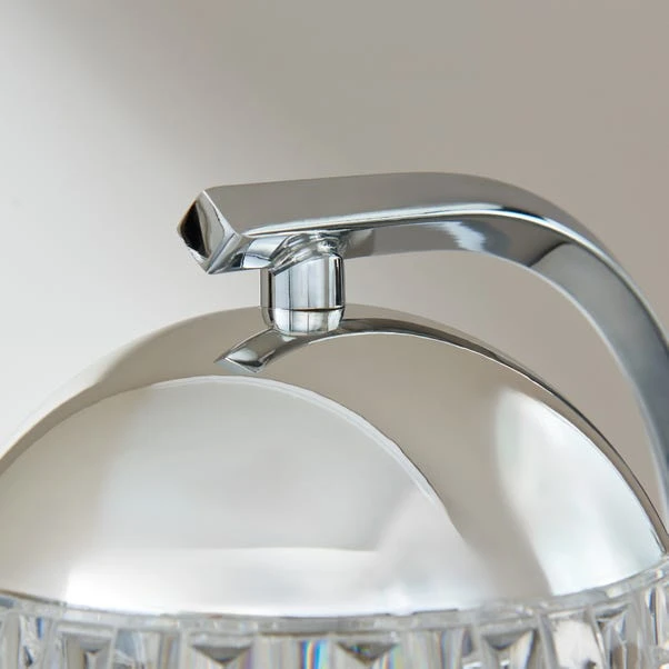 Finished in modern chrome and featuring a clear, faceted acrylic shade, this lamp has a touch on/off button and is supplied with a 1.5m cable for placement versatility.